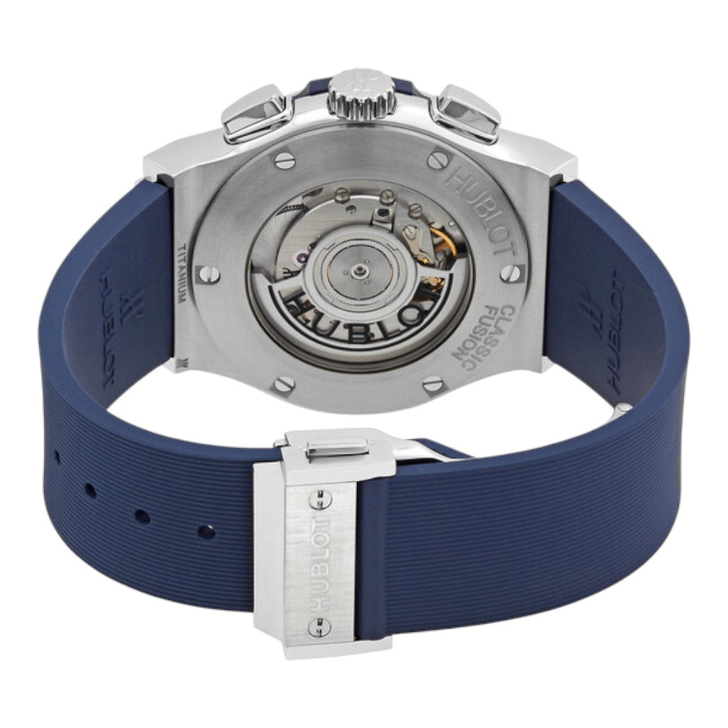 The watch is housed in a 42 mm case crafted from lightweight titanium, delivering strength, durability, and exceptional wearing comfort. Its satin-finished and polished surfaces highlight the minimalist elegance of the Classic Fusion collection, while the iconic Hublot bezel secured with H-shaped screws reinforces the brand’s unmistakable identity.