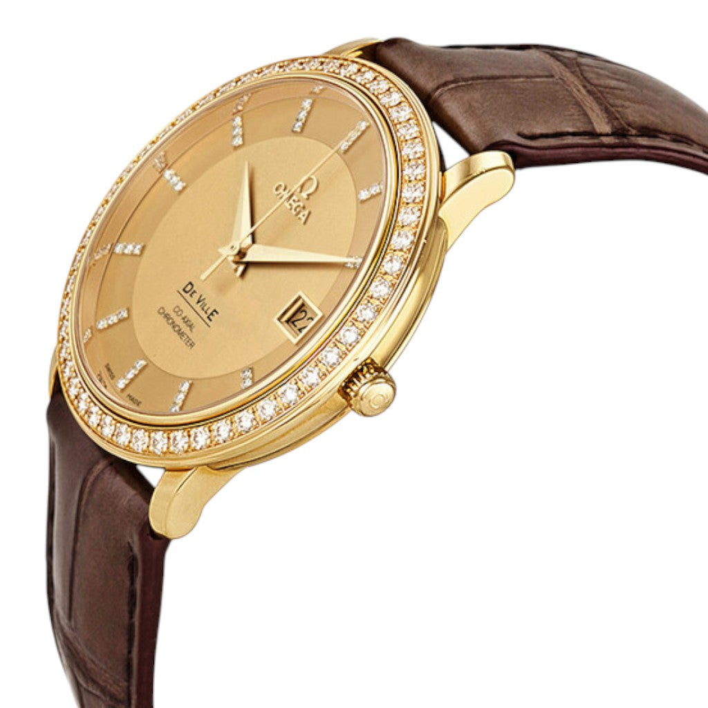 An elegant and timeless certified pre-owned Omega De Ville Prestige, reference 413.58.37.20.58.001, ideal for collectors seeking classic design, precious materials, and chronometer-certified performance in a full set configuration.