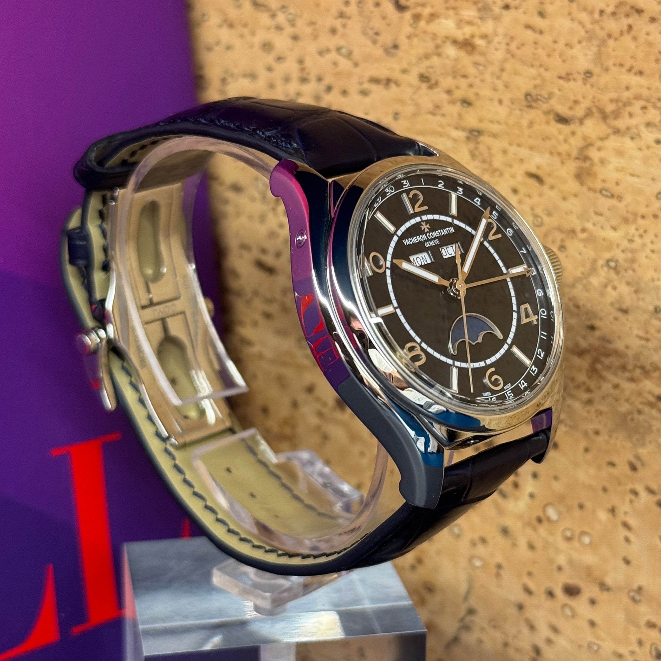 Actuellement disponible à Genève, ce modèle de 2019, en très bon état, est proposé full set, avec sa boîte Vacheron Constantin, carte de garantie, manuels et accessoires d’origine. Classée montre de luxe certifiée et certified pre-owned, elle a été contrôlée, authentifiée et est prête à rejoindre une collection exigeante.