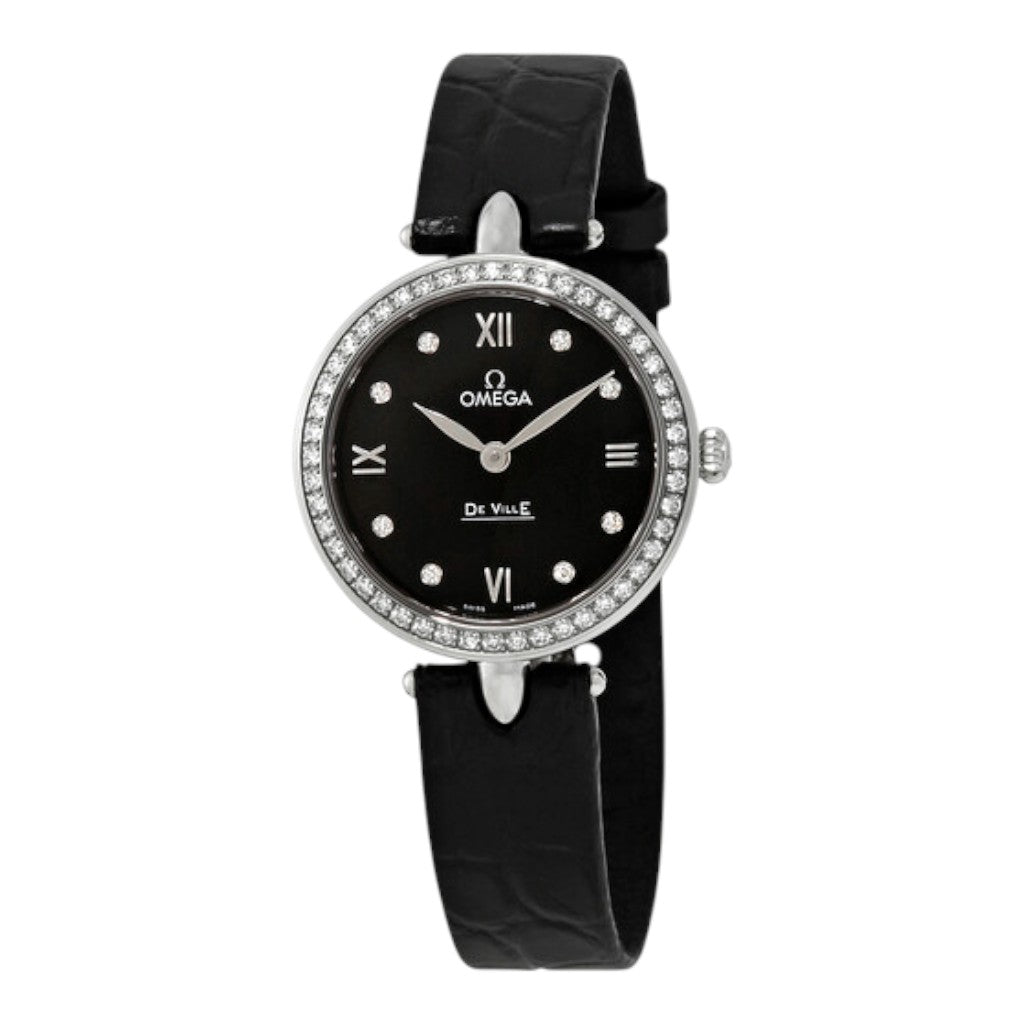 The Omega De Ville Prestige “Goutte de Rosée” reference 424.18.27.60.51.001 is a refined ladies’ timepiece that captures Omega’s elegant design heritage with a delicate, feminine aesthetic. Presented new and unworn, this model is offered as a full set with its original box and papers, making it a highly desirable pre-owned luxury watch in pristine condition.