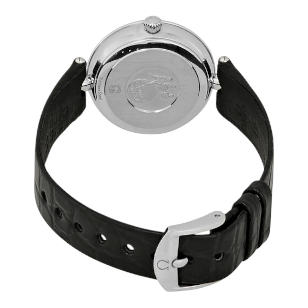 The watch features a 27.4 mm stainless steel case, delivering graceful proportions and a slim profile ideal for everyday elegance. Polished surfaces enhance the classic lines of the De Ville Prestige collection, while the domed sapphire crystal adds depth and refinement to the overall presentation.
