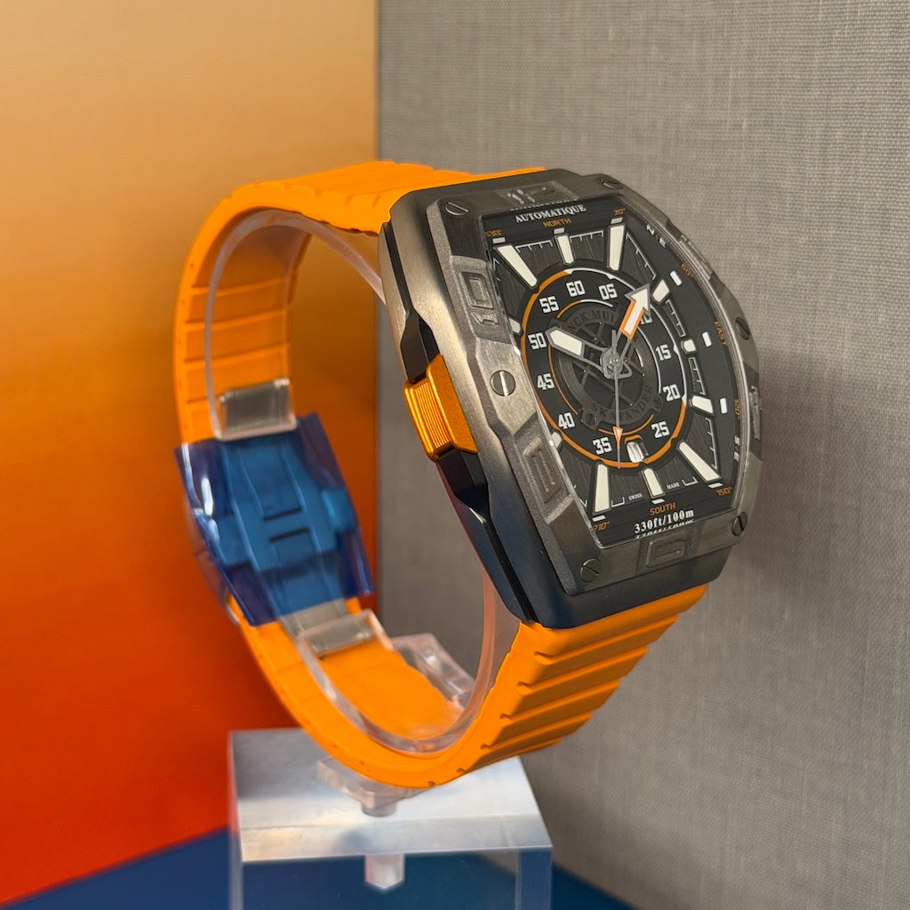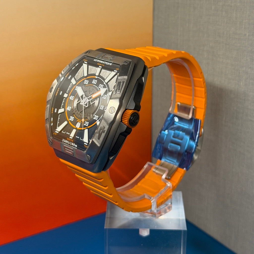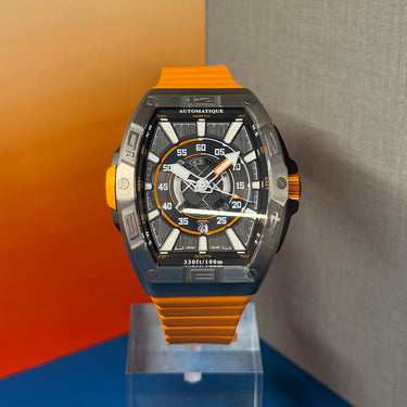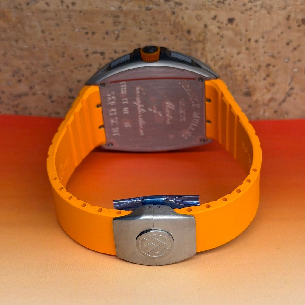 Dive into the bold world of haute horlogerie with this certified pre-owned Franck Muller Skafander, reference SKF43SCTTBRTTOR, presented in unworn condition and accompanied by its full set. This 2026 model exemplifies the fusion of avant-garde design and technical innovation that defines the Skafander line — Franck Muller’s distinctive take on the dive watch.