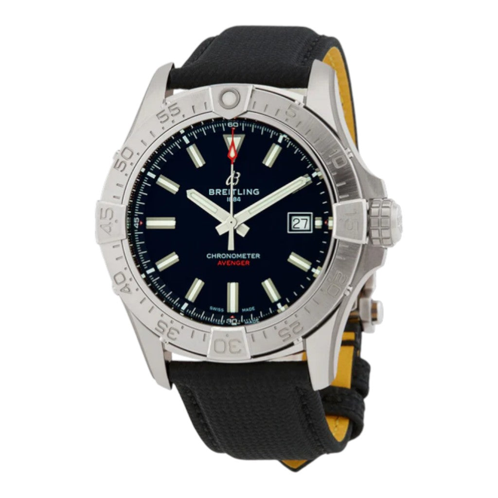 The Breitling Avenger Automatic 42 reference A17328101B1X1 is a robust and contemporary tool watch designed for performance and reliability. Crafted in stainless steel and measuring 42mm in diameter, this model embodies the powerful and functional identity of the Avenger collection while offering versatile everyday wearability.