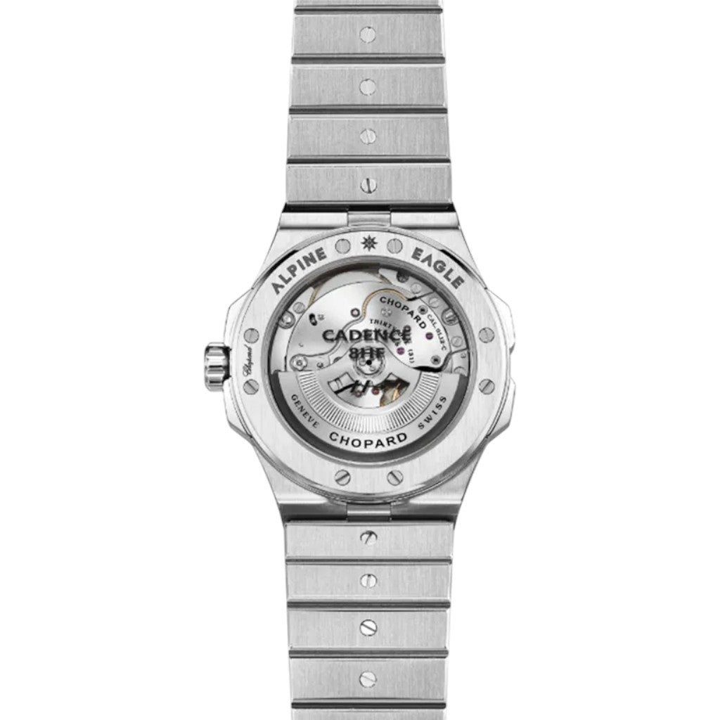 The Chopard Alpine Eagle 41 Cadence 8HF, reference 298600-3020, is a cutting-edge evolution of the Alpine Eagle collection, combining contemporary sports design with high-frequency mechanical innovation. Developed to deliver exceptional precision and everyday robustness, this certified pre-owned luxury watch is presented in new, never worn condition and is offered as a full set with original box and papers.