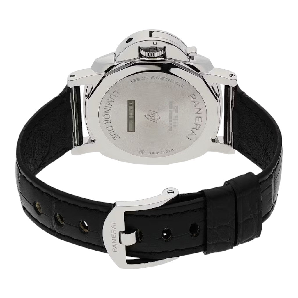 Powering the watch is the Panerai calibre P.900 automatic movement. This in-house calibre offers a power reserve of approximately 3 days (72 hours) and is engineered to provide reliable daily precision within the refined architecture of the Luminor Due collection.