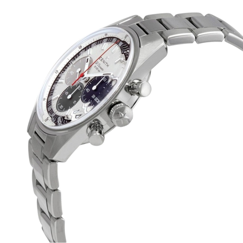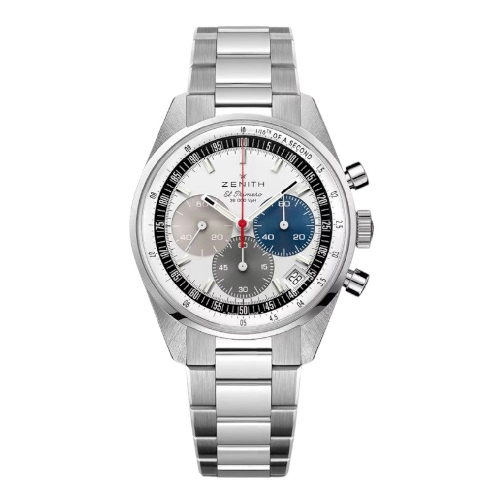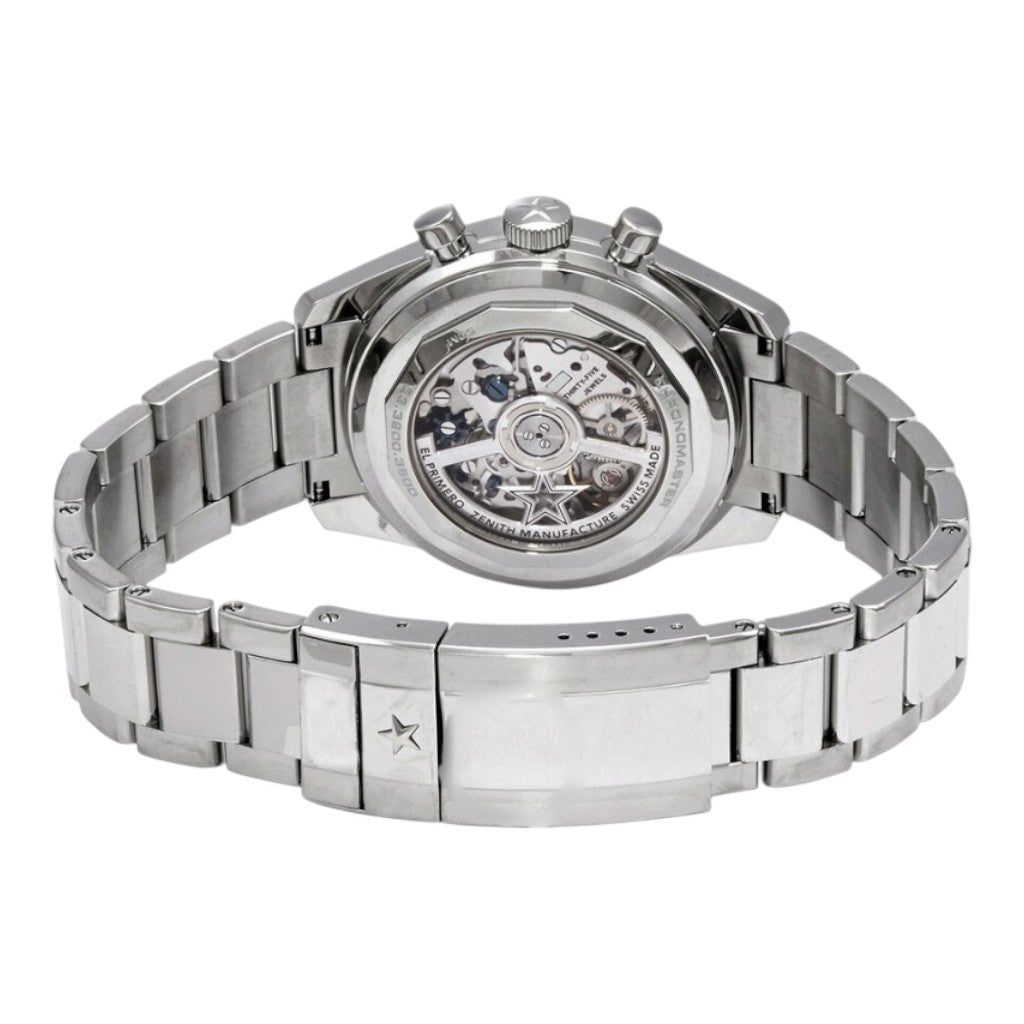 The Zenith Chronomaster Original reference 03.3200.3600/69.M3200 is a refined chronograph that faithfully revisits the iconic A386 design from 1969 while integrating modern watchmaking advancements. This certified pre-owned luxury watch features a 38 mm stainless steel case paired with a matching steel bracelet, offering perfectly balanced proportions and timeless versatility.