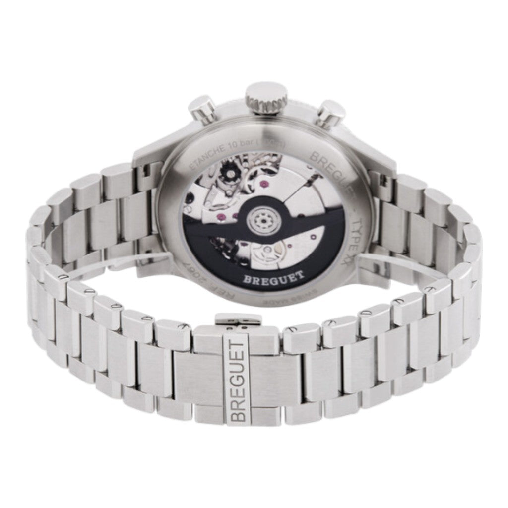 A highly desirable pre-owned luxury watch, the Breguet Type XX 2067ST/92/SW0 represents an exceptional opportunity to acquire a modern stainless steel flyback chronograph rooted in historic aviation heritage.