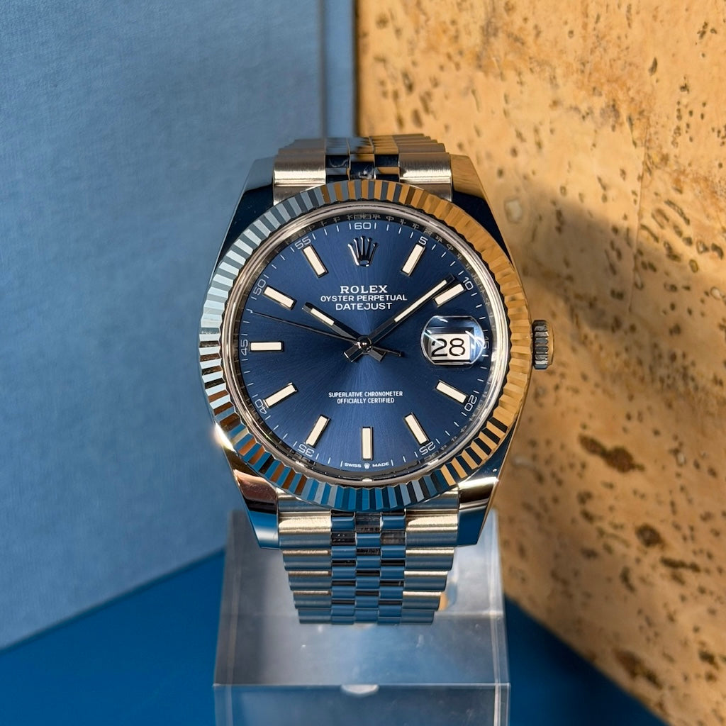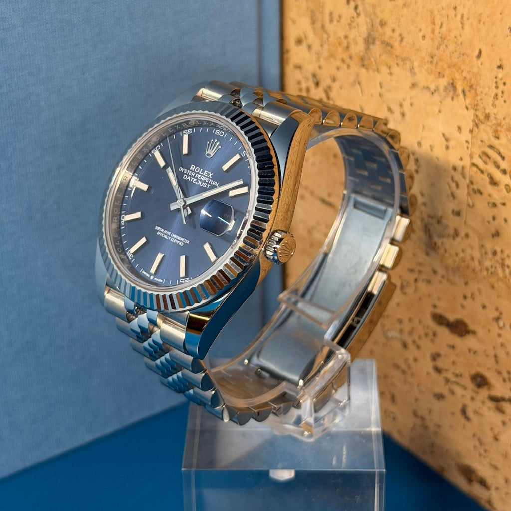 This certified Rolex Datejust 126334 Blue 41mm from 2025 is an outstanding opportunity to acquire a modern classic in excellent condition with complete provenance.