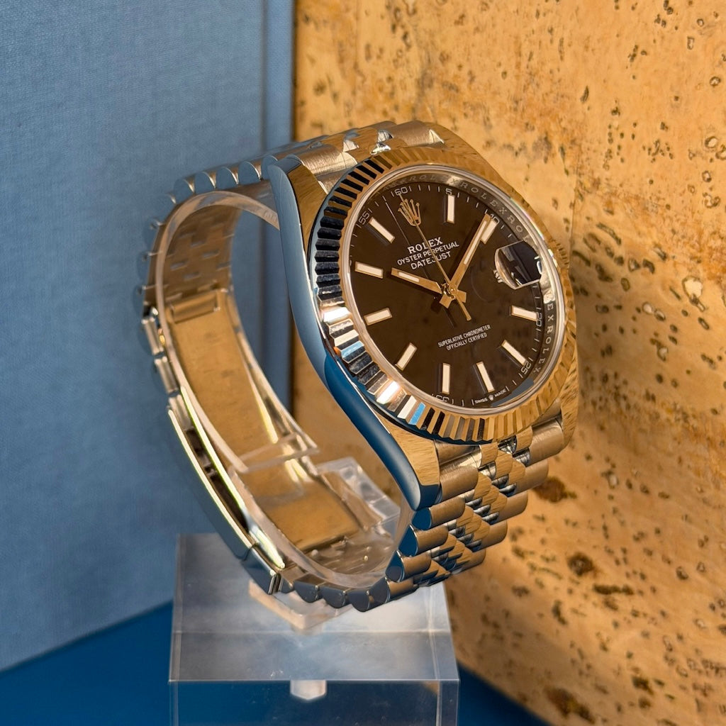 The Rolex Datejust 41, reference 126334, is a perfect balance of contemporary proportions and timeless elegance. This 2025 model is offered as a certified pre-owned Rolex, presented in very good condition, and delivered with its full original set, including box, warranty card, and booklets.