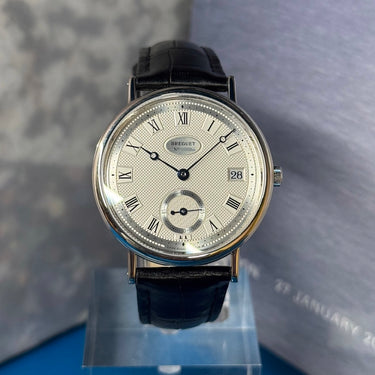 Symbole absolu du classicisme horloger à la française, la Breguet Classique réf. 5920BB/15/984 incarne l’élégance intemporelle et le savoir-faire historique de la Maison Breguet. Proposée ici dans sa version en or blanc 18 carats, cette montre de luxe certifiée, en très bon état, est actuellement disponible à Genève, bien qu’elle soit vendue sans boîte ni papiers.