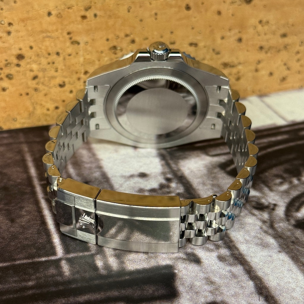 The 40 mm Oystersteel case combines robustness and elegance. It is complemented by a supple yet refined five-link Jubilee bracelet with an Oysterlock clasp and Easylink extension for quick adjustment to the wrist.